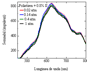 - A fost elaborat un material luminescent, sensibil la presiunea de oxigen pentru senzori de oxigen; structurile substantelor folosite ca sensibilizatori au fost tabelate in raport; concentratia de colorant a fost aceeasi raportata la polimer (materialul cu luminescenta sensibila la presiunea oxigenului), iar pentru unul din coloranti s-au facut si filme de concentratii diferite pt. a urmari efectul concentratiei. S-a studiat comportarea la diferite presiuni a unor senzori pe baza de polistiren dopat cu diferiti coloranti xantenici (fluoresceina, eosina, eritrozina), folosindu-se un spectrometru cu fibra optica si celule cu presiune controlata realizate in cadrul laboratorului partenerului ICPE (P5).