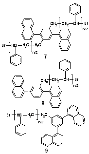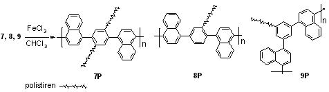 - Au fost sintetizate sase serii de poliarilene si heteropoliarilene optoactive, avand polistiren in lant secundar, respectiv, principal. Spectrele de emisie ale polimerilor prezinta o clara deplasare batocromica a lungimi de unda de emisie, λmax, comparativ cu macromerii corespunzatori datorita extinderii lungimii conjugarii.