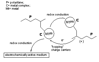 Mecanismul de conductie hibrida redox-conjugata in polisilani-complecsi metalici |