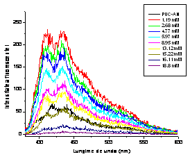 Spectrul de stingere a fluorescentei polimerului PUI-An in DMF la diferite concentratii diferite de (CH3COO)2UO2 |